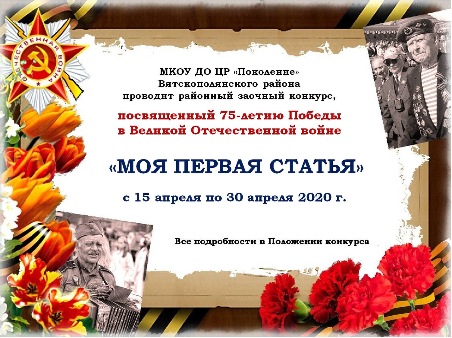 Волонтерами "Солнце внутри" образовательных организаций Вятскополянского района 23.04.2020г. запущена акция "Школьник помнит". Поучаствовать в данной акции может любой неравнодушный человек, загрузив фото или видео-файлы о ветеранах Великой Отечественной войны. Подробную информацию можно узнать на официальном сайте проекта школьник-помнит.рф